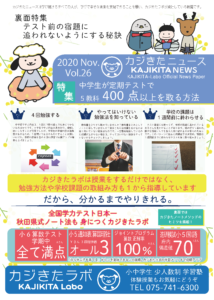 特集 中学生が定期テストで5教科400点以上を取る方法 YouTubeでも解説しています! 是非動画でもご覧ください。 裏面特集 テスト前の宿題に追われないようにする秘訣 カジきたニュース 11月号 特集内容