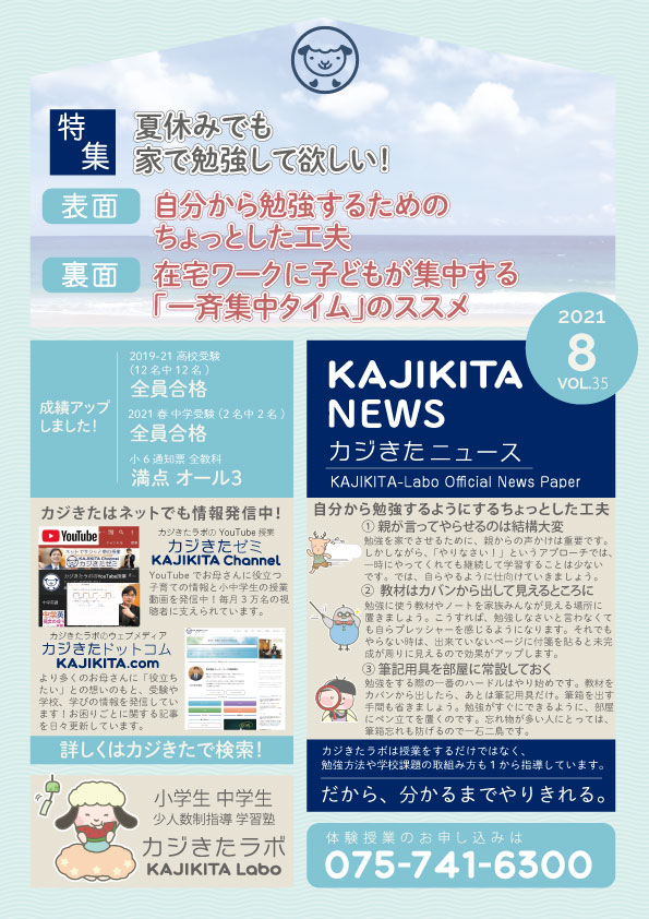 カジきたラボでは、夏休みの学習計画をきちんと立てて、学校の宿題はもちろんのこと、受験対策や今までの苦手克服に取り組みます。期末テストが終わって間もないですが、今から学習計画を立てることが学年末テストの成績で差を生みます。